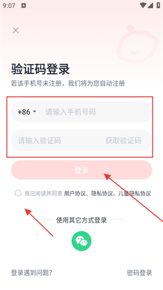 3、輸入手機號、驗證碼,勾選同意用戶協(xié)議、隱私協(xié)議、兒童隱私協(xié)議,點擊登錄。