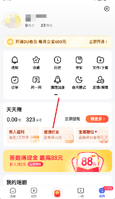 1、打開百度極速版APP,點擊右下角我的。