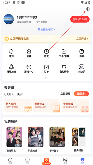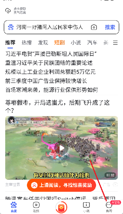1、打開百度應(yīng)用,點擊底部導(dǎo)航欄的我的選項,進(jìn)入個人中心頁面。