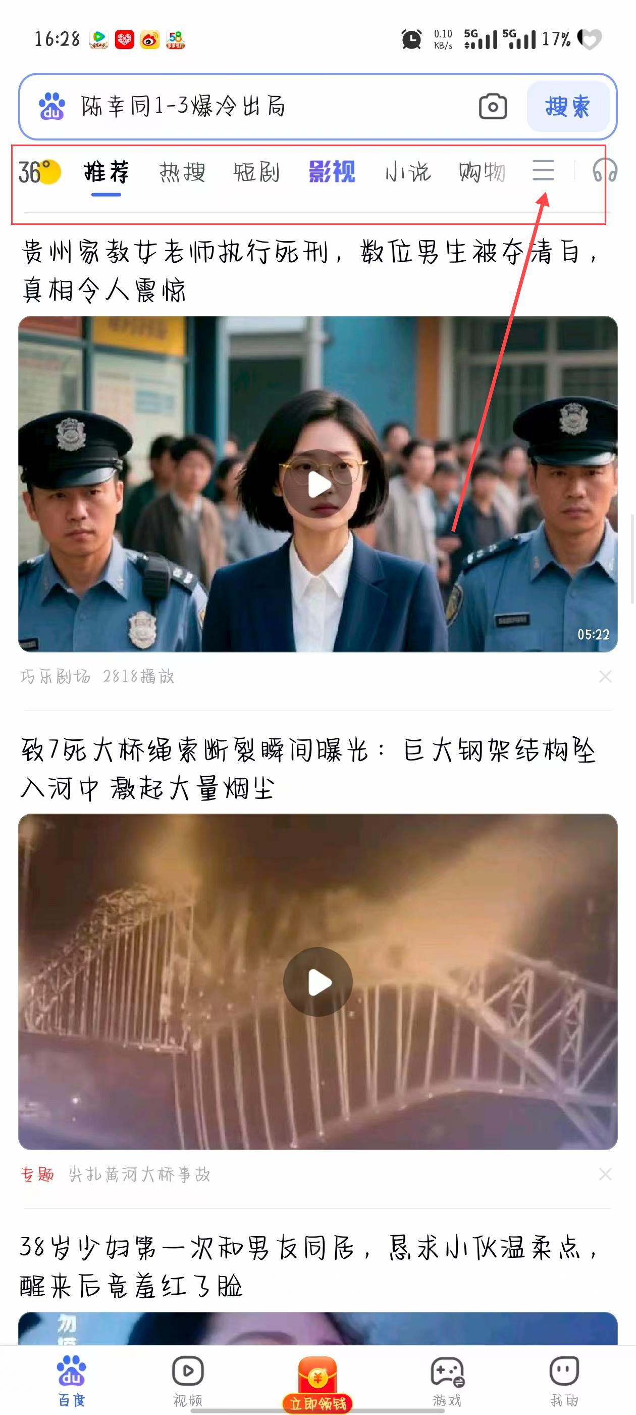 1、打開百度極速版進(jìn)入首頁,點擊首頁頂部導(dǎo)航欄中的三圖標(biāo),進(jìn)入全部頻道頁面。