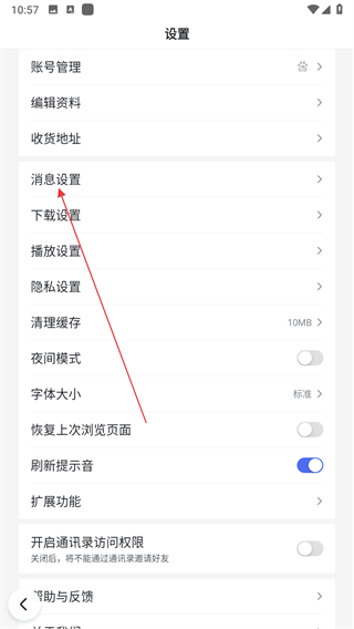 3、在設(shè)置頁面,點擊消息設(shè)置選項。