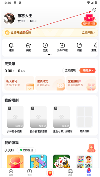 2、在我的頁面,點擊右上角的設(shè)置圖標(biāo)。