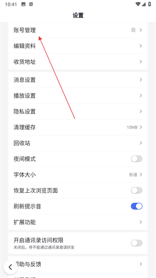 2、在個人中心頁面中,點擊設(shè)置圖標(biāo),進(jìn)入設(shè)置頁面后選擇賬號管理。