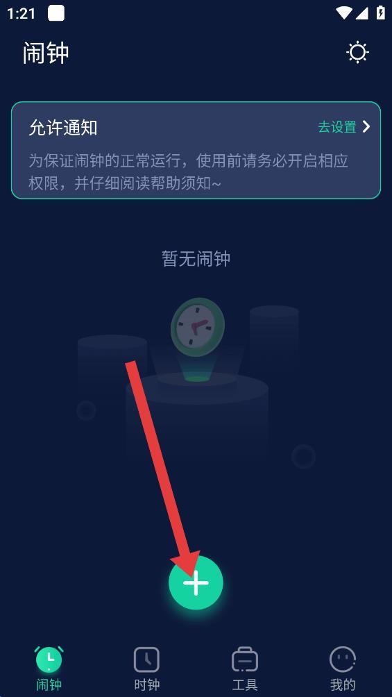 1、打開豆豆鬧鐘APP,在鬧鐘界面中,點(diǎn)擊中間綠色的+號(hào)按鈕。