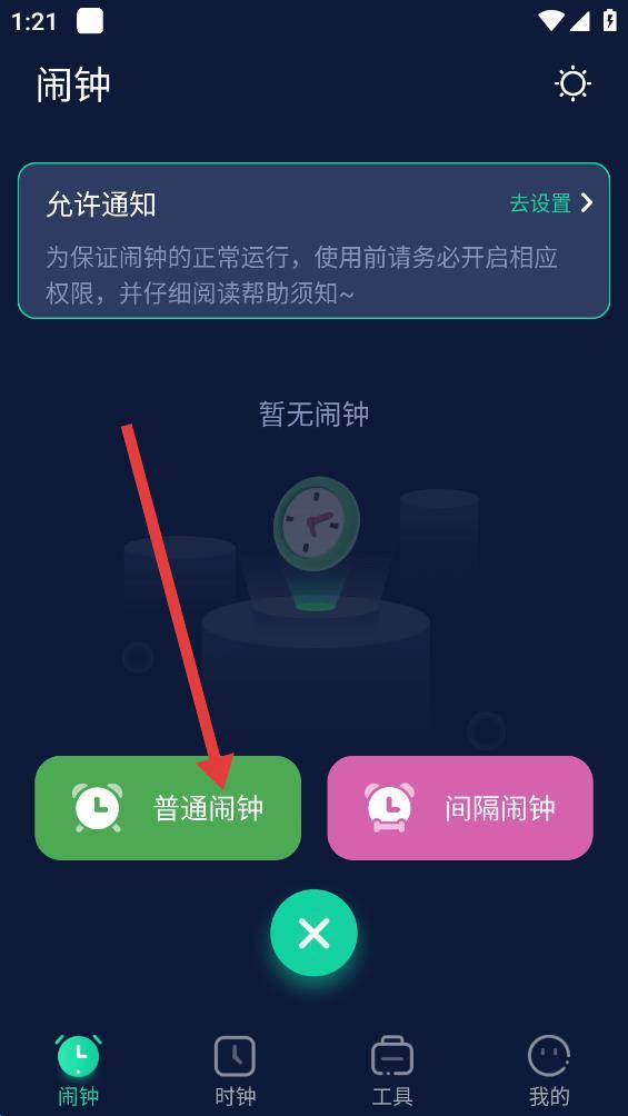 2、在彈出的選項(xiàng)中,點(diǎn)擊普通鬧鐘,進(jìn)入鬧鐘設(shè)置界面。