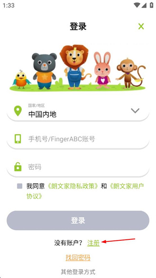 2、在登錄界面點擊“注冊”選項,進入新建賬戶頁面。