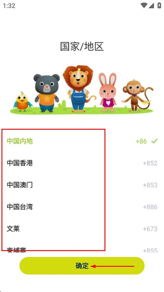 1、選擇“中國內(nèi)地”作為國家/地區(qū),點擊“確定”按鈕,進入登錄界面。