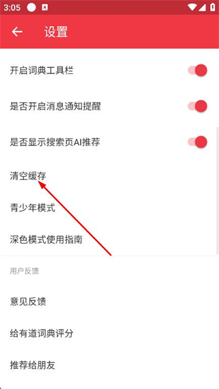 3、進(jìn)入設(shè)置頁面后,點(diǎn)擊上方的清空緩存選項(xiàng)。