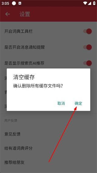 4、在提示彈窗中,點(diǎn)擊確定,即可完成緩存清除。
