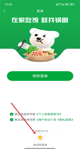 3、在登錄頁面中,可以點(diǎn)擊下方驗(yàn)證碼登錄按鈕,使用驗(yàn)證碼的方式進(jìn)行登錄。
