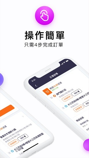 操作簡單,僅需4個(gè)步驟就可以完成接單,簡潔的接單界面,能夠快捷接單;