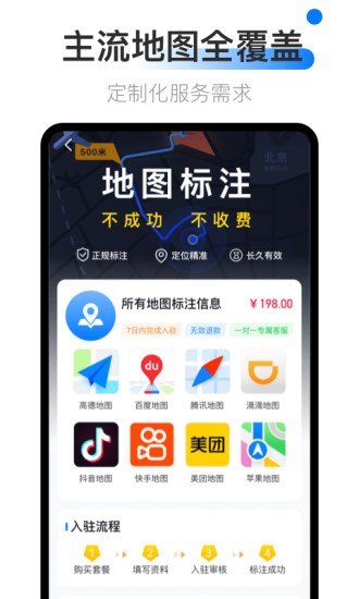 地圖標注中心手機版為廣大商戶所提供的一個可以為店鋪添加地圖標記的出行工具,支持高德、百度、騰訊等常見的地圖軟件,讓你在一個app內(nèi)就能輕松完成標識添加的操作,通過添加標注的方式,來讓更多人看到你的商鋪。