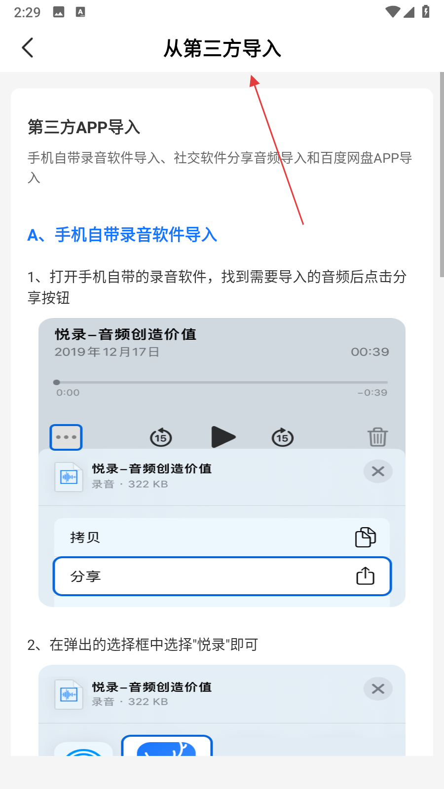 4、若選擇第三方APP導(dǎo)入,點(diǎn)擊后會(huì)進(jìn)入第三方導(dǎo)入說明頁面,按照頁面提示操作即可。