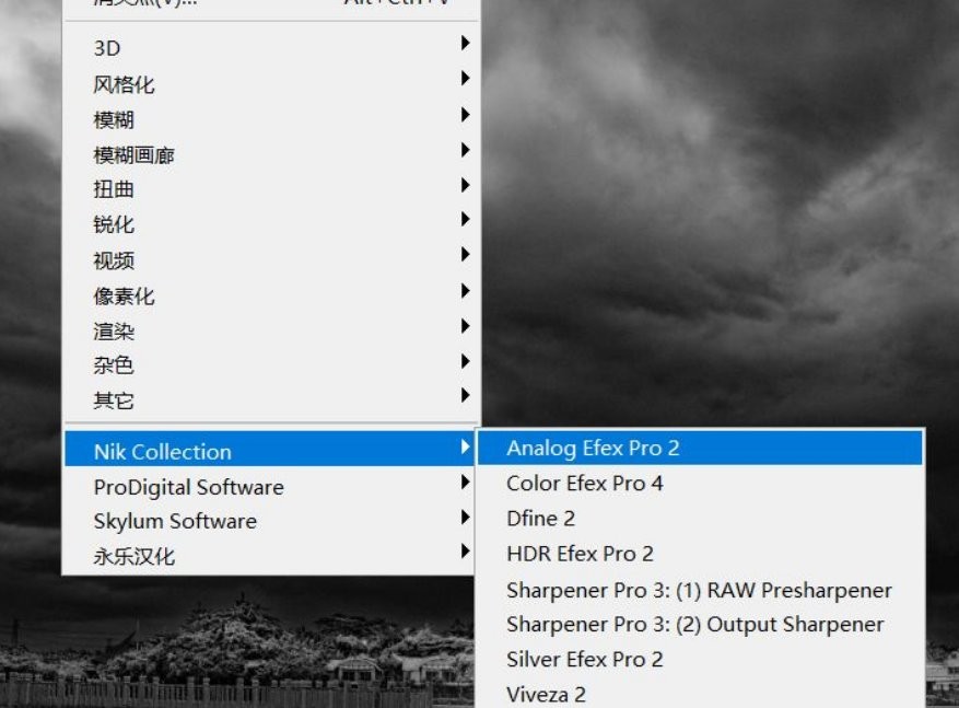 選擇濾鏡菜單里的nik collection選項(xiàng)即可打開使用。