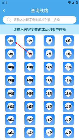 2、在查詢線路界面的搜索框中可輸入公交線路編號,或直接查看線路列表。