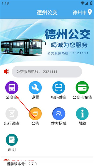 1、打開德州公交軟件,點擊“公交車”選項,進(jìn)入查詢線路界面。