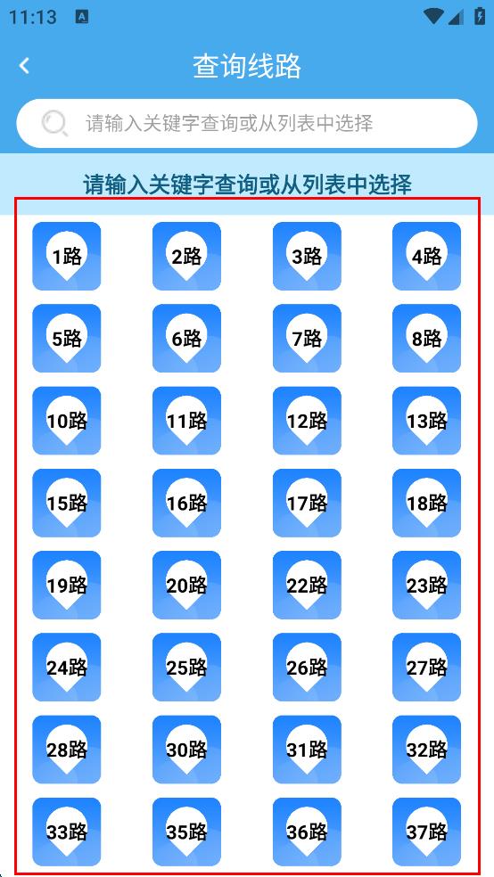 2、在應(yīng)用主界面,找到“公交車”選項(xiàng),點(diǎn)擊該選項(xiàng),進(jìn)入查詢線路界面,準(zhǔn)備選擇要查詢的公交路線。