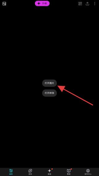 1、打開潑辣修圖APP,點(diǎn)擊打開圖片的功能按鈕。
