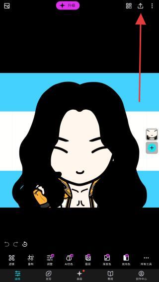 3、可對(duì)照片進(jìn)行濾鏡添加、色彩調(diào)整等編輯操作,操作后點(diǎn)擊右上角↑的圖標(biāo)。