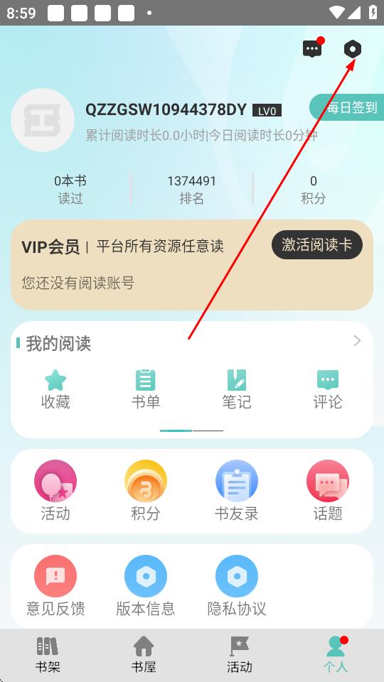 2、在個(gè)人頁面中,點(diǎn)擊右上角的設(shè)置圖標(biāo)。