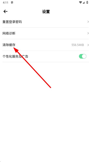 3、在設(shè)置頁面中,找到清除緩存選項(xiàng),點(diǎn)擊即可完成緩存垃圾的清理操作,釋放app占用的存儲空間。