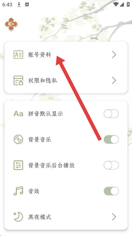 3、在設(shè)置頁面點(diǎn)擊賬號資料選項(xiàng),進(jìn)入編輯頁面。