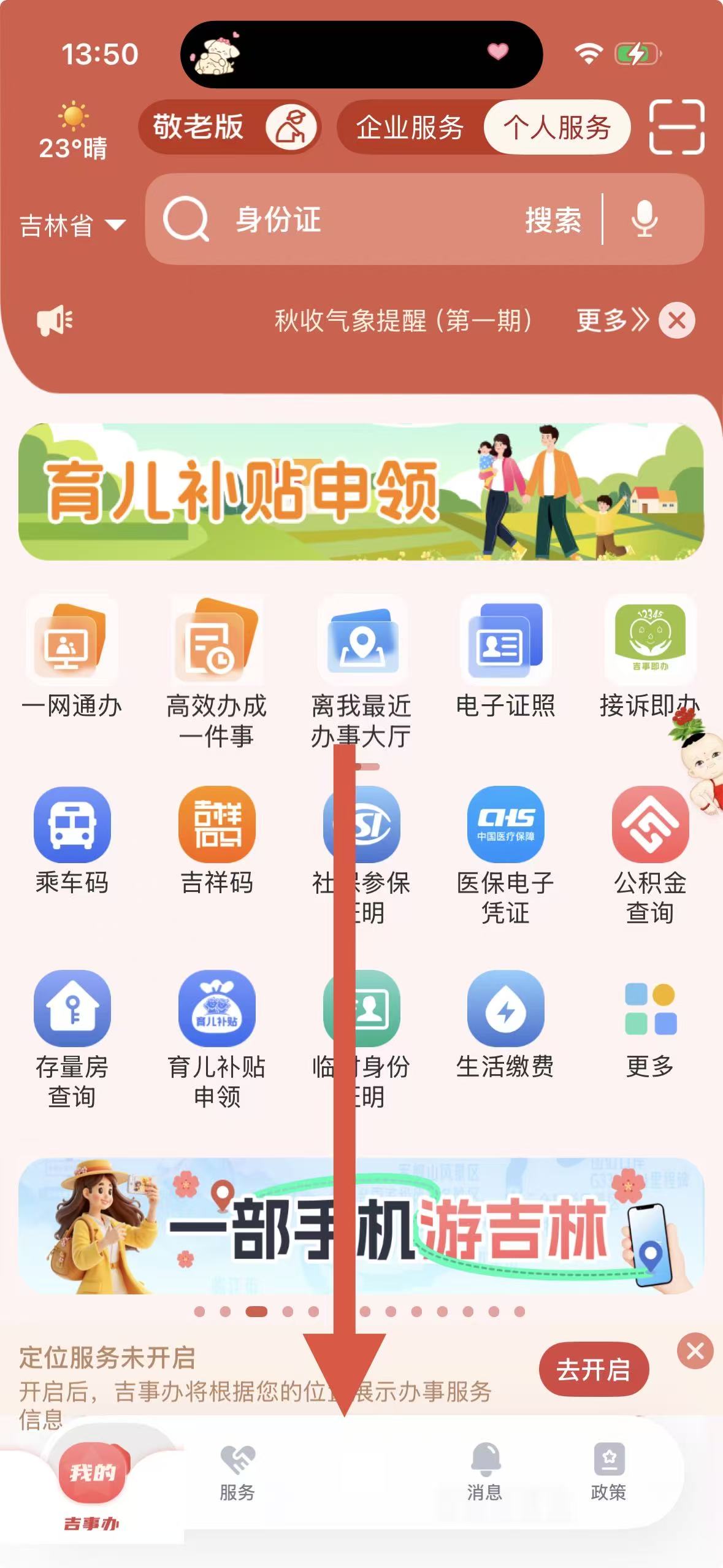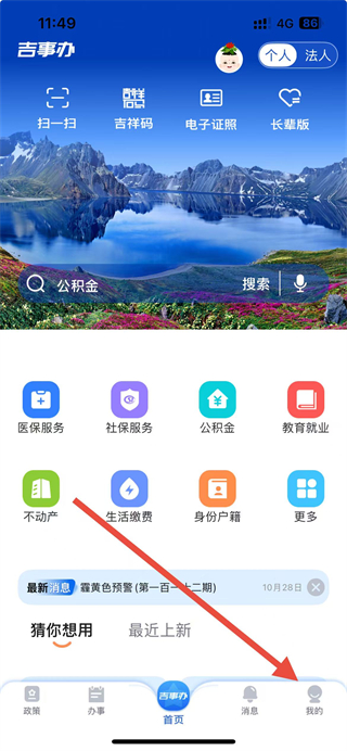 1、在吉事辦app首頁點(diǎn)擊我的選項(xiàng),進(jìn)入個人中心頁面。