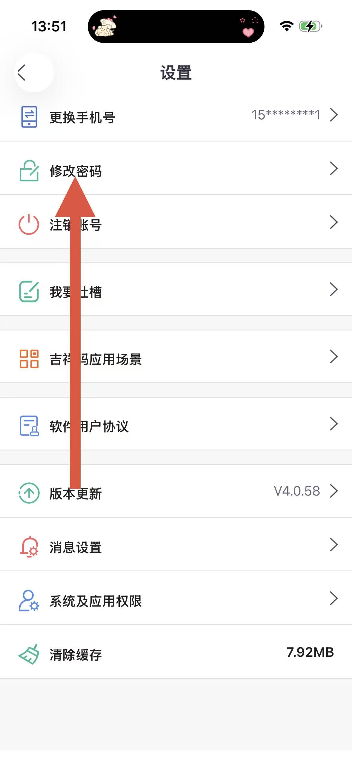 3、在設(shè)置界面中,點(diǎn)擊修改密碼選項(xiàng),進(jìn)入修改密碼頁面。