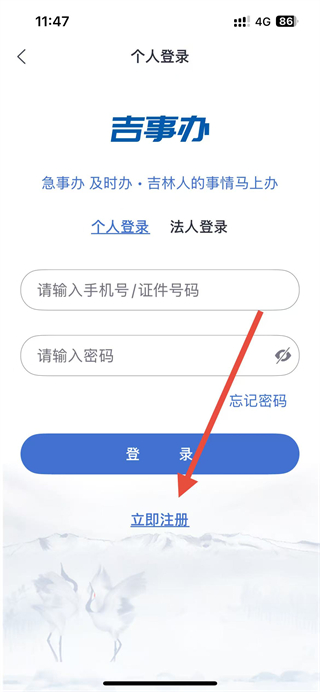 3、在個人登錄頁面點(diǎn)擊立即注冊選項(xiàng),進(jìn)入注冊頁面。