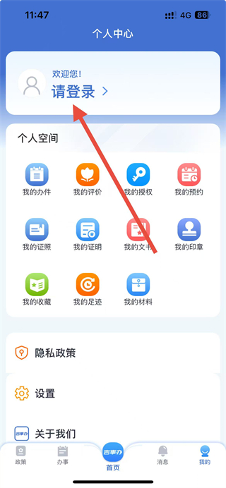 2、在個人中心頁面點(diǎn)擊請登錄區(qū)域,進(jìn)入個人登錄頁面。