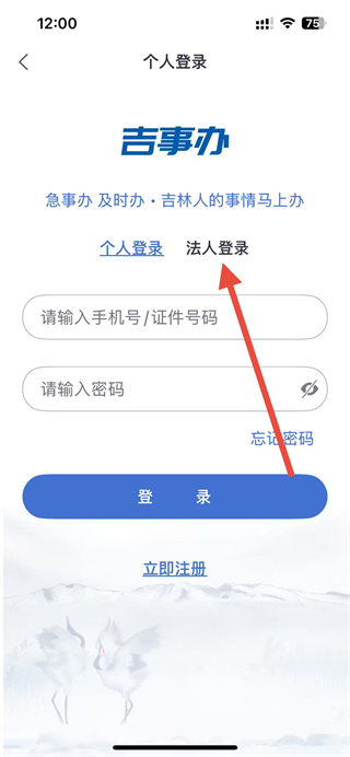 2、在登錄界面,選擇法人登錄選項(xiàng),切換至法人登錄頁面。