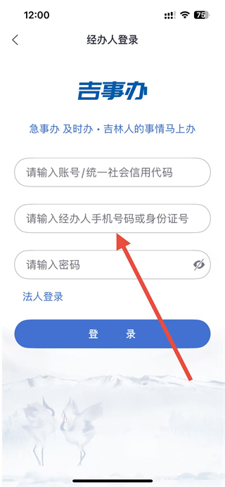 4、在經(jīng)辦人登錄頁面,依次輸入信息,點(diǎn)擊登錄按鈕完成賬號登錄。