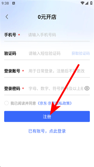 3、在0元開店頁面,依次填寫手機號碼等信息后點擊注冊,完成注冊。