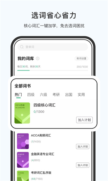 自由設(shè)定每日學(xué)習(xí)目標(biāo),定時提醒不怕忘,今日事今日畢。背詞有計劃,考試好通關(guān)!