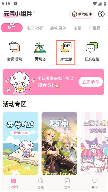 1、點擊進入軟件首頁,點擊上方的DIY壁紙,進入調休壁紙界面。