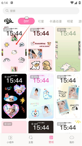 2、在進入之后這里匯聚了豐厚的diy壁紙樣式,選擇點擊一個自己心儀的進入其中。
