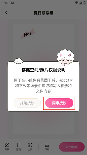 5、最后點擊同意授權的按鍵,讓軟件讀取自己的相冊儲存空間,在自己的相冊中選擇想要加入的diy照片,即可完成自己的壁紙制作了。