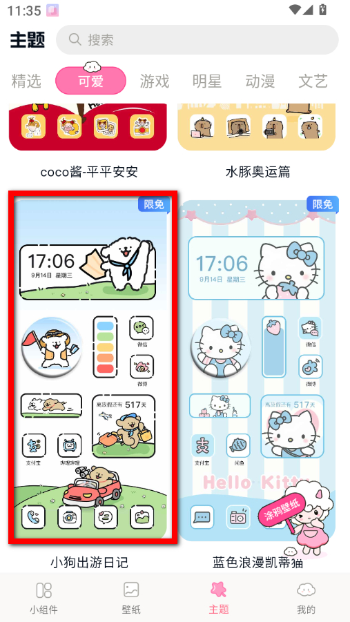 3、在可愛主題列表界面,點擊想要更換的主題條目,進入主題詳情頁面。