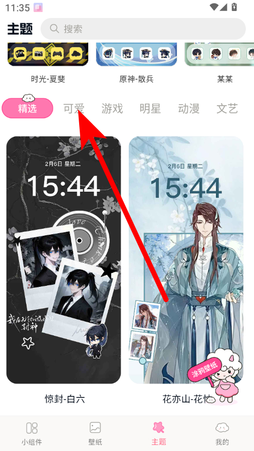 2、在主題頁面,點擊可愛分類,進入可愛主題列表界面。