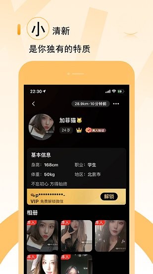 小豬佳緣是一款同城高顏值精英交友、同城交友的APP,這里有非常多的高顏值優(yōu)質(zhì)小姐姐、以及非常多的高素質(zhì)精英VIP男士。各行各業(yè)精英、才藝雙全的人都在小豬佳緣,有老師、模特、空姐、網(wǎng)紅、企業(yè)主、白領(lǐng)等,快來找到心動的Ta吧!