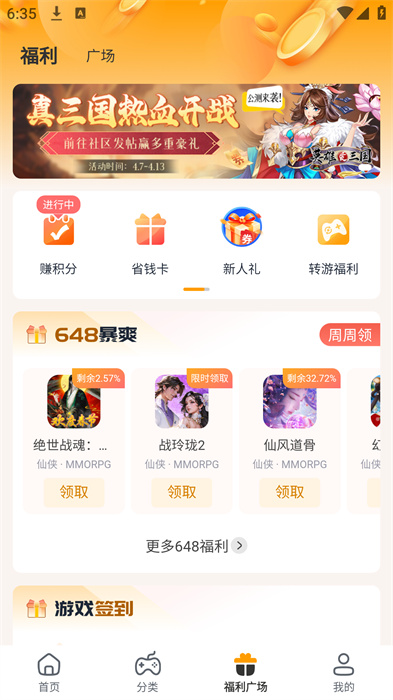 3、然后也可以在軟件中看到【福利廣場】,這樣就可以看到非常多的平臺福利,你可以任意的進行領取禮包;