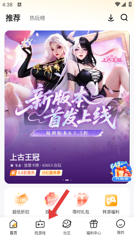 1、在游小福首頁底部導航欄,需要點擊找游戲,進入發(fā)現(xiàn)的頁面。