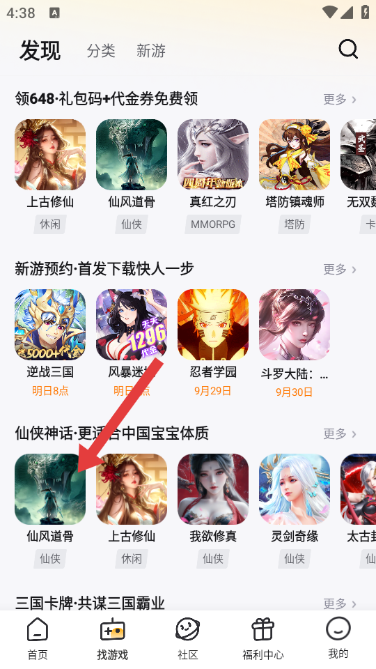 2、在發(fā)現(xiàn)頁面的游戲列表中,點擊要下載的游戲,進入游戲詳情頁面。