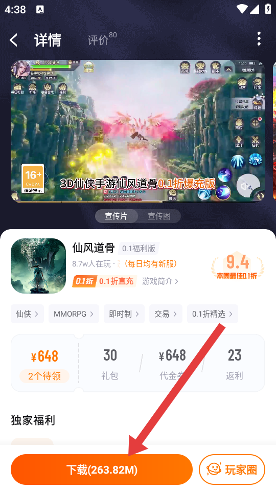 3、在游戲詳情頁面,點擊橙色的下載按鈕,開始下載這部游戲。