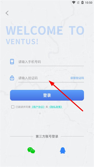 3、在登錄頁面輸入手機號碼,輸入驗證碼,勾選同意用戶協(xié)議,點擊登錄,也可選擇下方第三方賬號登錄。