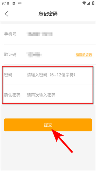 3、設(shè)置6-12位新密碼并確認(rèn),點擊提交完成密碼找回操作。