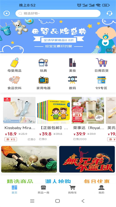 1、精選優(yōu)質(zhì)商品,各種大牌商品超優(yōu)惠,支持限時(shí)秒殺、包郵等。