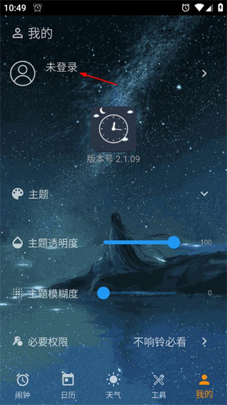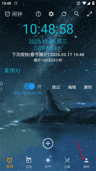 1、打開鬧鐘軟件,點擊底部“我的”圖標,進入個人中心界面。