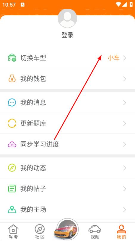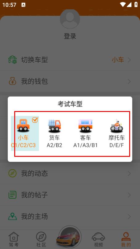 4、在彈出的考試車型界面中,選擇想要切換的車型。