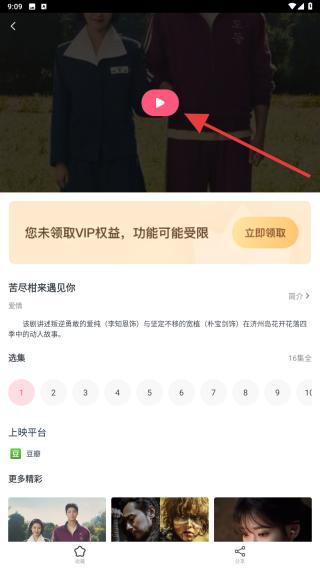 3、進(jìn)入劇集播放頁面后,點擊視頻中央的播放按鈕,即可開始播放視頻。